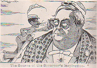 The Democratic press of that day never relaxed its criticism, never relented. When his term of office expired, he had made a reputation for ability, but his very name was desecrated, for he was the brains of the party in power, and all of the offensive acts of the regime of scalawags and carpetbaggers in the east were laid at his door; consequently, the bitter dislike of the people of his section continued, and he never retrieved their respect to the day of his death. He afterwards became a member of Congress from the Wilmington District, defeating the gifted and idolized Waddell, and made there a reputation for ability. Subsequently, he was Governor of the State, residing in Raleigh. After his election he gloated over his success and triumph over his former foes, and in assuming the duties of his office he displayed his vindictiveness, the first words of his inaugural address being, “There is retribution in history.” While there in office he had a checquered career, barely escaping impeachment. He was a man of great ability, a forceful and strong debater, an intense partisan and relentless hater.